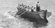 The window is based on the Conlan Ship Window in the chapel in that it has an engraved image of the ship being approached by a cutter showing the ship at her old mooring. The window is based on the photos below.