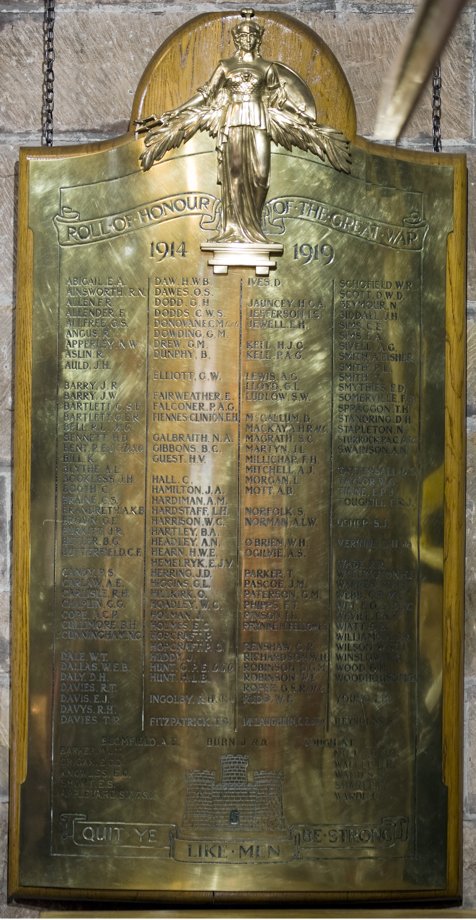 This lists the names of Old Conways who lost their lives in the war. In the Ship it was mounted in 1920 on the Lower Deck on the main mast behind the altar. It is now hung next to the Gulls window.
